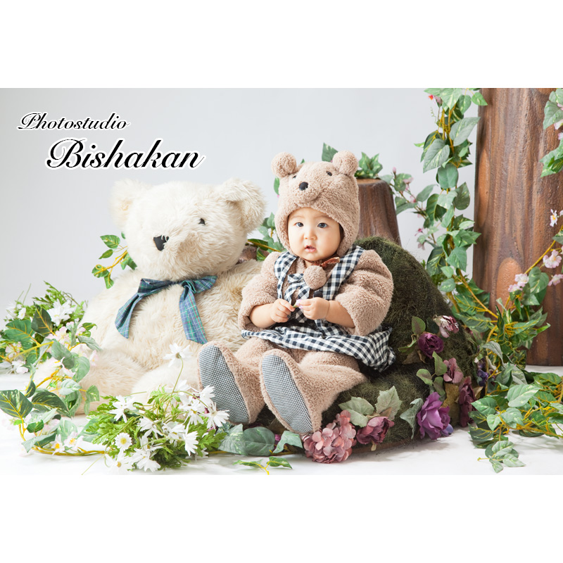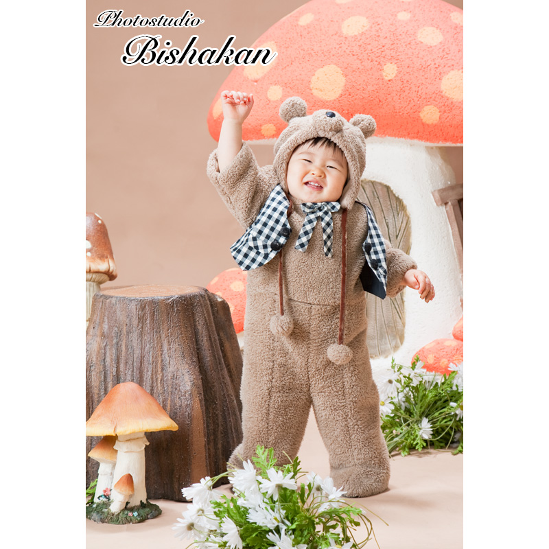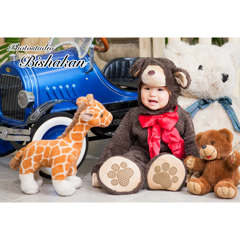 1歳・2歳のかわいい姿を撮影いたします。ドレスやタキシードをはじめ着ぐるみなどの衣装をご用意していますので、ほかには無い写真を残していただけます。とびっきりの表情を撮影させていただくために、お子様のご機嫌をみて、撮影日を複数回に分けていただくことも可能です。